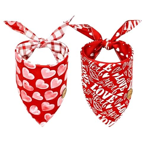 $15.99CROWNED BEAUTY Valentines Day Dog Bandanas Reversible Large 2 Pack, Love You Set, Red Buffalo Plaid Adjustable Triangle Scarves for Dogs Girl Boy Pets DB89-L