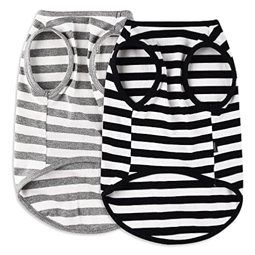 $12.74CtilFelix Dog Shirt Striped Clothes Stretchy Vests for Small Medium Large Dogs Boy Girl Cat Apparel Soft Cotton Puppy T-Shirts Lightweight Pet Tank Top Kitten Outfit Pack-2 Black & Light Grey M