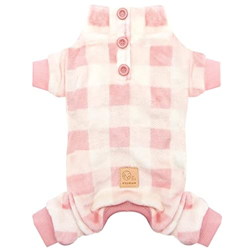 $21.99cyeollo Dog Pajamas Christmas Thermal Warm Dog Pjs Onesie Red Buffalo Flannel Dog Jumpsuit Doggie Winter Clothes Outfits for Small Dogs Color Pink