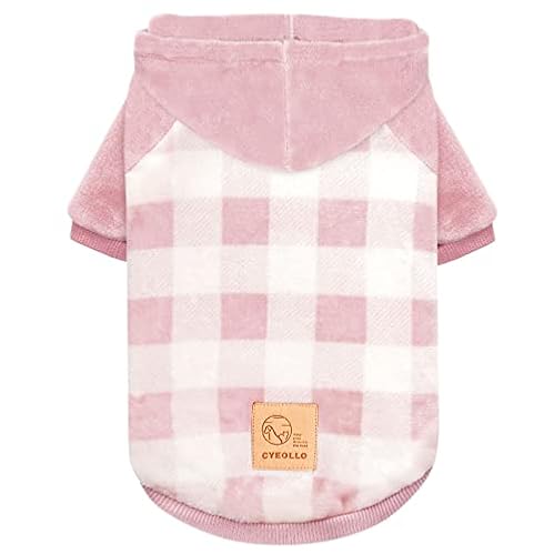 $18.99cyeollo Dog Sweater Buffalo Plaid Dog Flannel Hoodie Sweatshirt Christmas Dog Sweater Winter Clothes Dog Hoodies for Small Dogs Cats Size S
