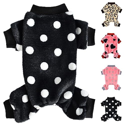 $14.99Dog Clothes Dog Pajamas for Small Dogs Girl Boy Super Soft Warm Small Dog Sweater Pjs Cute Pet Clothing Dog Sweaters Jumpsuits Plush Puppy Onesie Outfits for Chihuahua Yorkie Large Polka dot Black