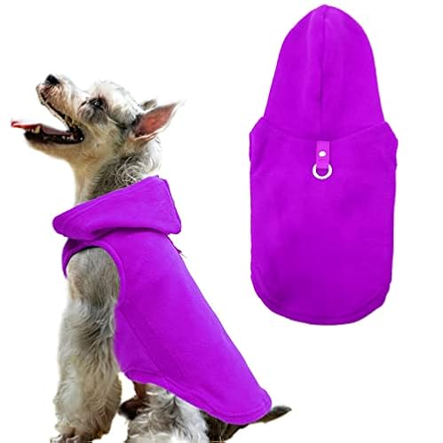 $10.99Dog Hoodie Pet Fleece Sweater with Hat Warm Soft Dogs Winter Coat Jacket with Leash Attachment for Small Medium Dogs Purple Medium