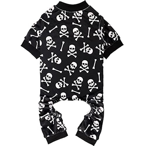 $15.99Dog Pajamas Halloween Dog Onesie Short Plush Dog Pjs Skull&Crossbones Super Soft and Stretchy Dog Jammies for Small Dogs (S) Black