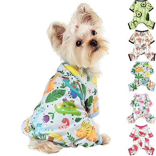 $21.99Dog Pajamas for Small Dog Girl Boy – Puppy Pjs Jammies 4 Leg Dog Clothes for Chihuahua Yorkie – Spring Summer Onesies Jumpsuit Clothing for Pet Dogs Male Female by Kosiyi (Small, Dinosaur)