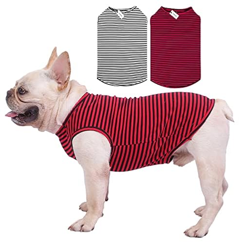 $13.99Dog Shirts Cotton Striped T-Shirts, Breathable Basic Vest for Puppy and Cat, Super Soft Stretchable Doggy Tee Tank Top Sleeveless, Fashion & Cute Color for Boys and Girls (S, Black+Red)